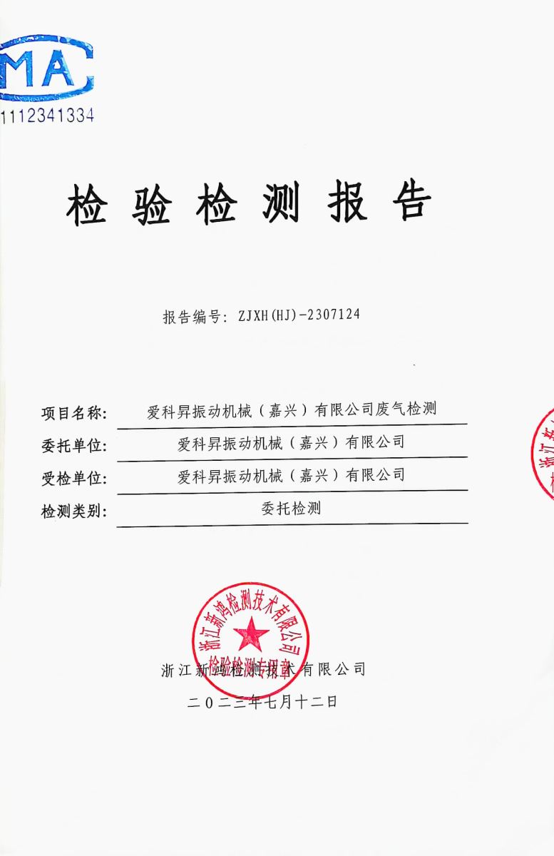 爱科昇振动机械(嘉兴)有限公司于2023年进行的环境污染防治工作,下图是废气检测报告和噪声检测报告。